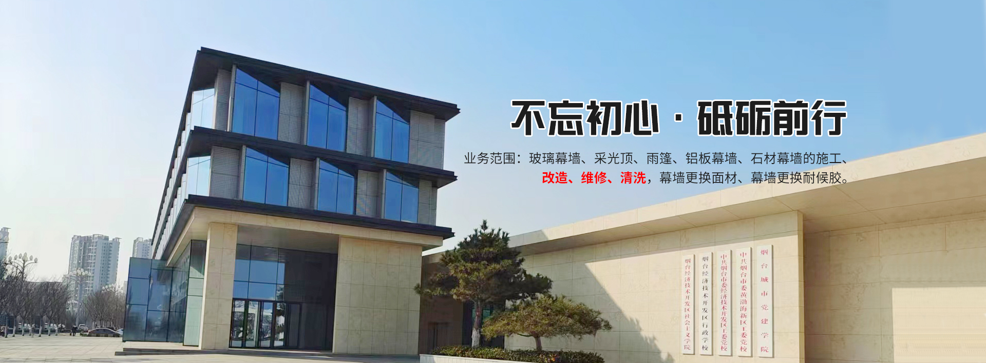 煙臺幕典裝飾工程有限公司是一家致力于幕墻施工、改造、維修、保養(yǎng)為方向的新興企業(yè)。公司成立于2017年,公司擁有技術(shù)骨干10余人,安裝施工人員60余人。主要技術(shù)人員從事幕墻行業(yè)20多年,對于玻璃、石材、金屬三種類型幕墻的制作、安裝、改造、維修,積累了豐富的寶貴經(jīng)驗。我們隨時掌握著幕墻技術(shù)的新發(fā)展,通過現(xiàn)場勘察快速分析出幕墻破損及滲漏的主要原因,根據(jù)客戶需求量身制定快捷、經(jīng)濟、有效的解決...